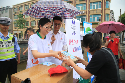 7月3日,由督导服务组成员以及党员志愿者们组成的宣传小分队着装整齐,走上街头,摆摊设点,进行“多城同创、美丽台州”为主题的宣传活动。暴雨的天气,没有阻挡宣传小分队的热情,队员们通过张贴海报、发放宣传资料、现场讲解等方式,吸引了广大群众参与活动,进一步提高了群众文明创建意识,受到了群众的好评,宣传效果明显。
